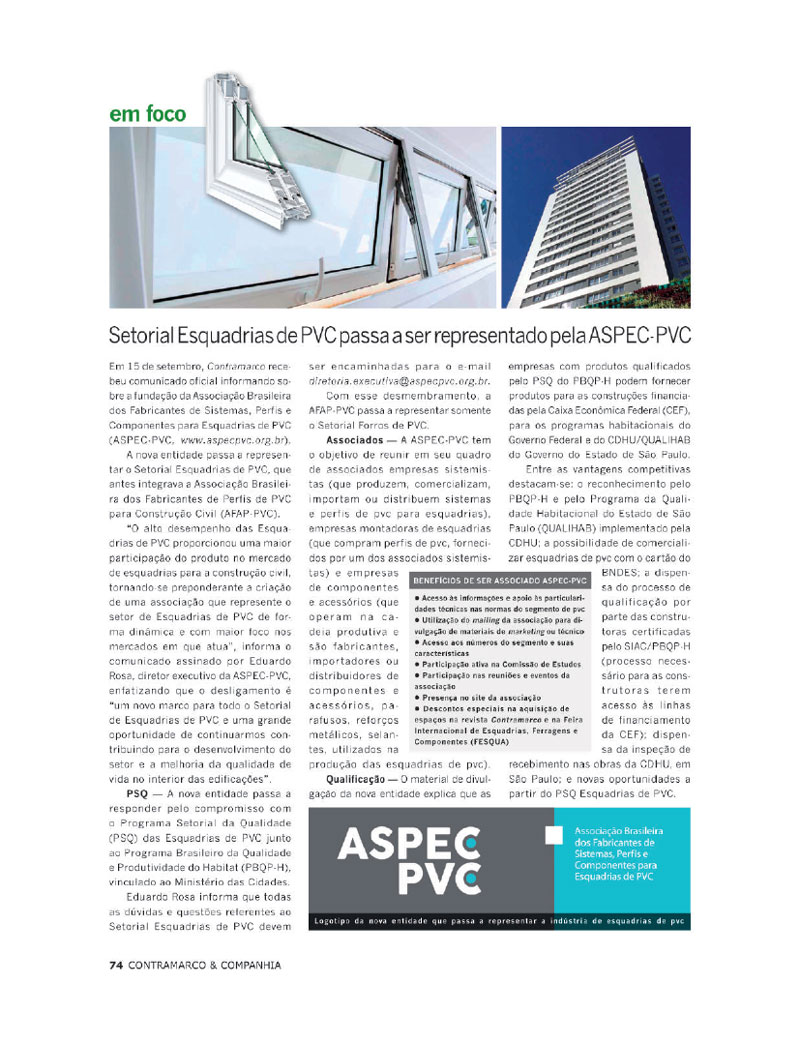 A Contramarco passa a apoiar institucionalmente a ASPEC-PVC e ainda fechou um acordo para oferecer aos associados da entidade descontos exclusivos para anúncios e outros produtos da revista